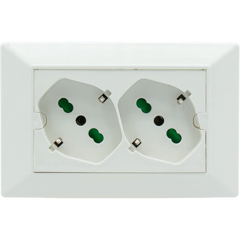 - Double Italian/German 2P+E 16A two-pin socket.