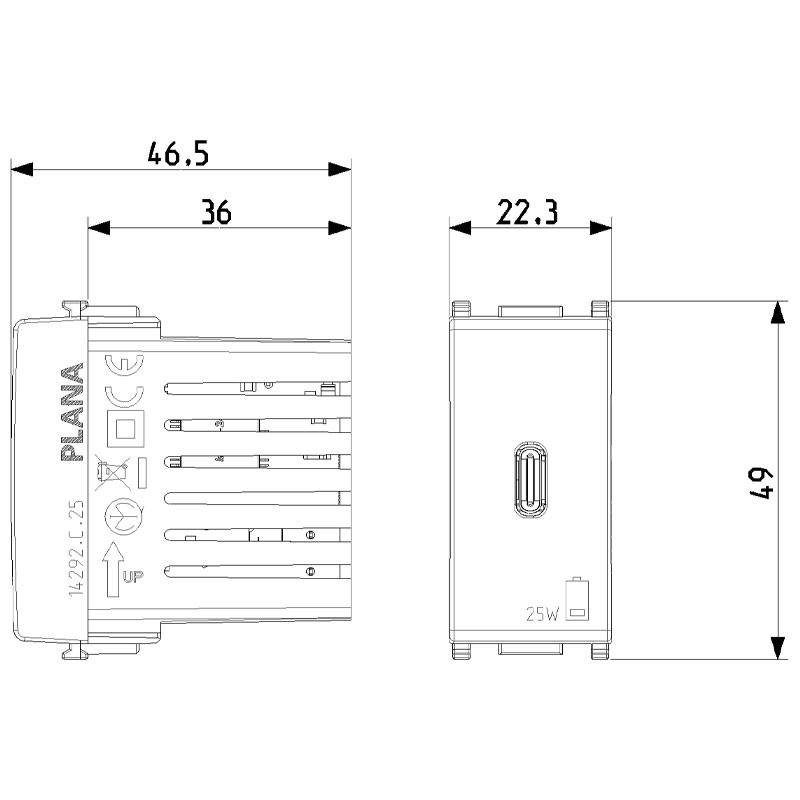 USB-C Socket Vimar Plana 25W: fast charging in one module