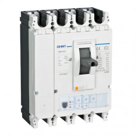 The Chint NM8N 250A 4 poles moulded case circuit breaker (271158) protects three-phase+N lines with high breaking capacity 36 kA, ideal for industrial panels 380/415 Vac, with Ir adjustment and compact dimensions.