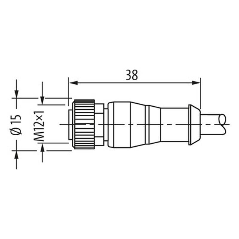 Murr M12 female 0° connector with PVC-JB cable with the following characteristics: