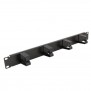 Item rack19" grommet panel, complete with 4 rings with heights 40 mm and 80 mm, made of 15/10 1 unit steel sheet, black color. Screws and cage nuts excluded.