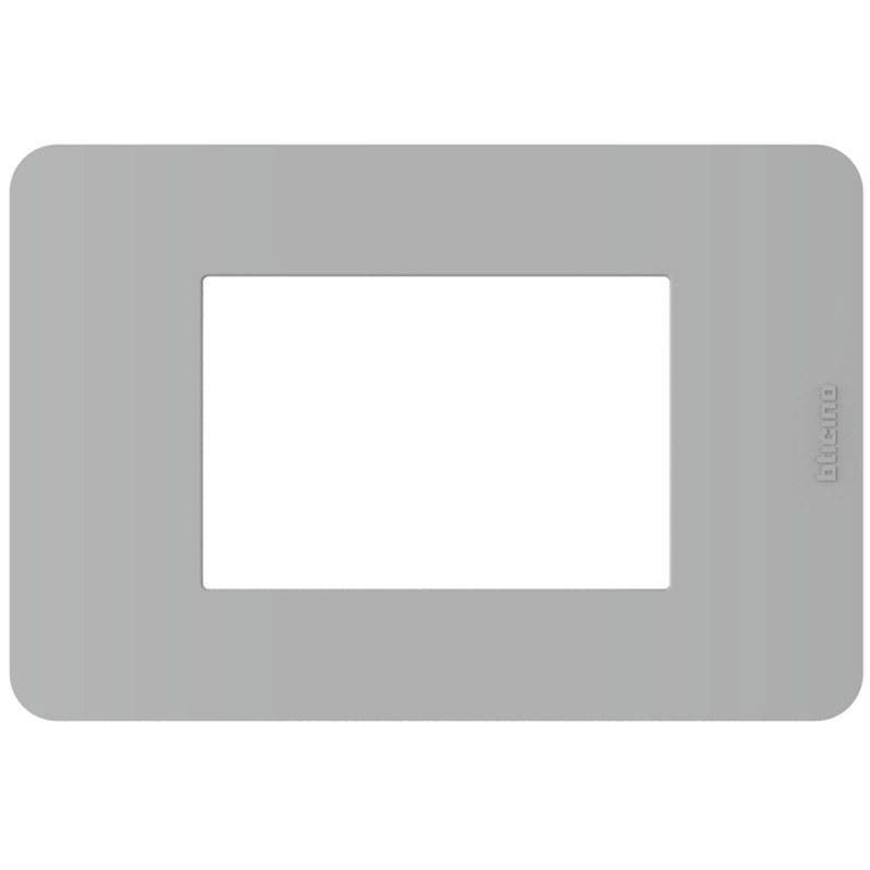 Bticino MatixGO 3 modules grey plate, made of technopolymer material, monochrome, to be mounted on J4703 frame.