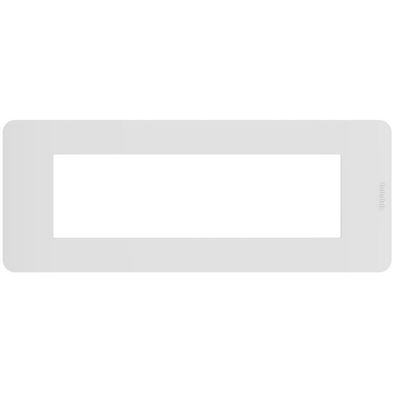 Bticino MatixGO 7 modules plate white, made of technopolymer material, monochrome, to be applied on J4707 frame.