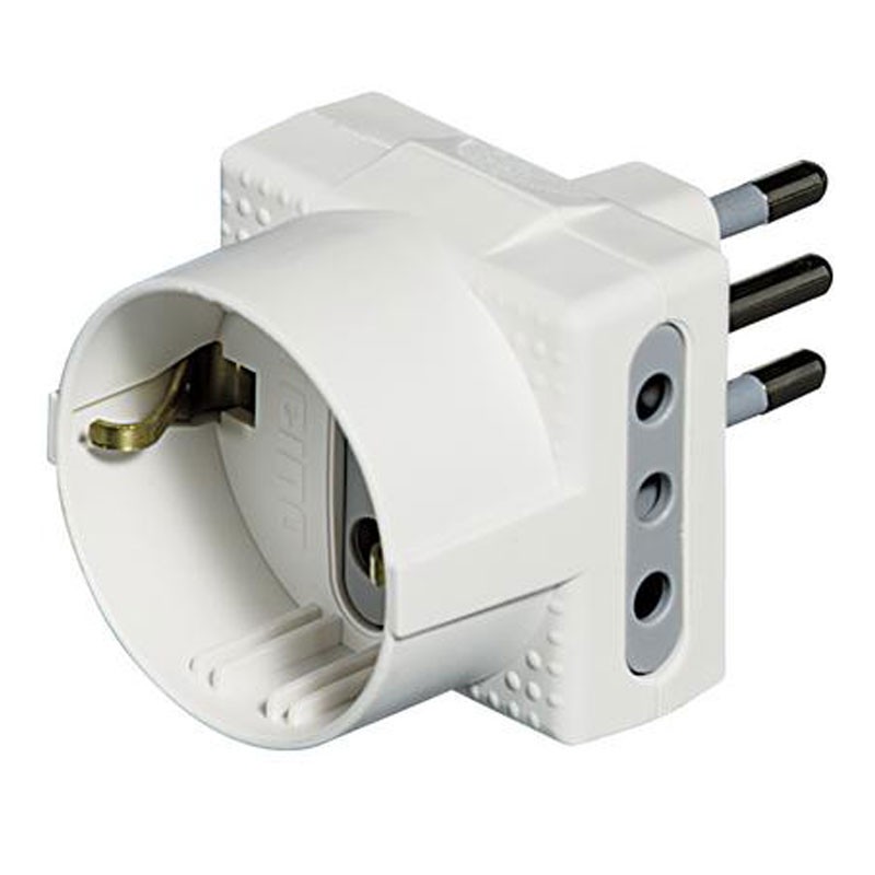 Bticino triple adapter trio German plug 2 sockets 10A plug 10A white S3610DE