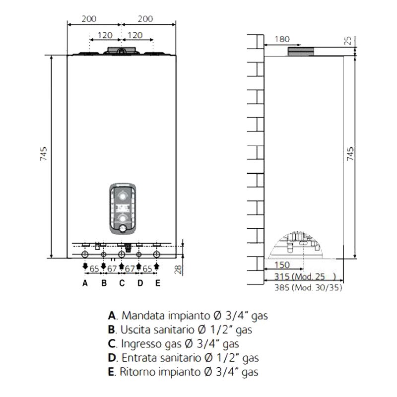 - Gas inlet Ø 3/4 gas