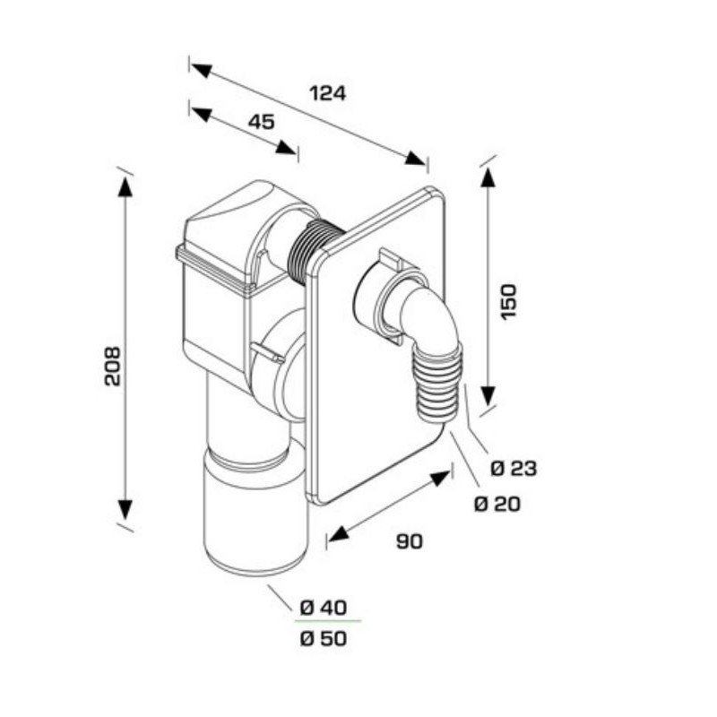 Bonomini Criollo built-in siphon for washing machines and dishwashers with the following features:
