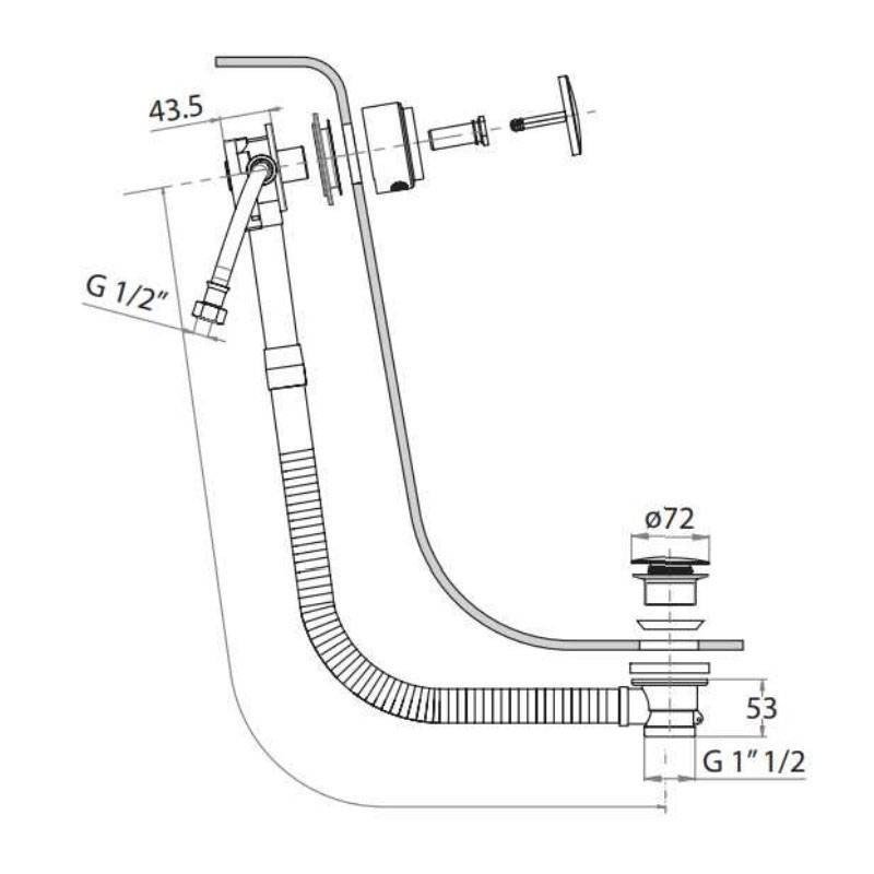 Cgs brass and copper bathtub siphon 45-55 cm 120-CT.01