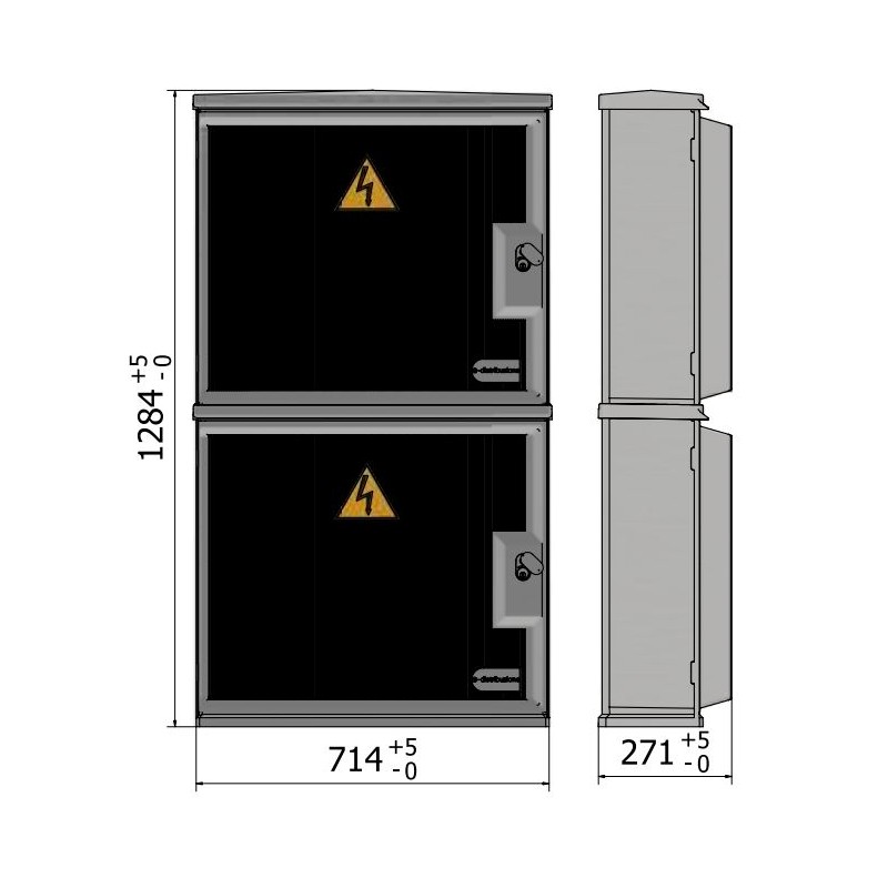 Double OEC fiberglass ARE/C-SS container, stacked for single-phase and three-phase meters, with the following features: