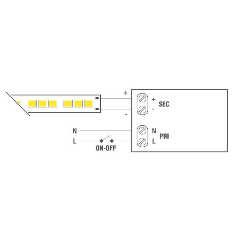 LEF constant voltage (CV) LED strip power supply with the following characteristics: