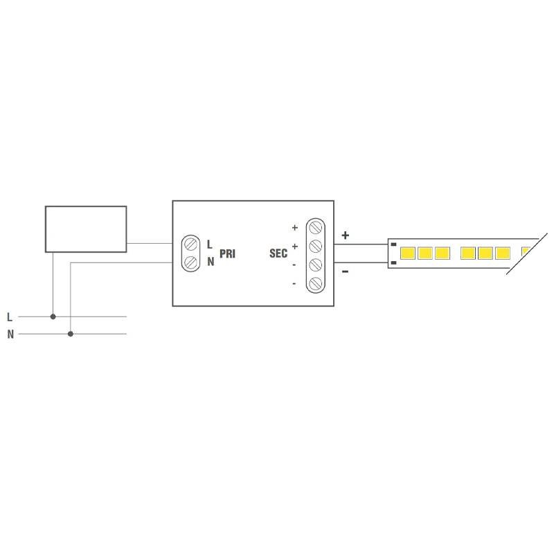 LEF constant voltage (CV) dimmable phase cut LED strip power supply with the following characteristics: