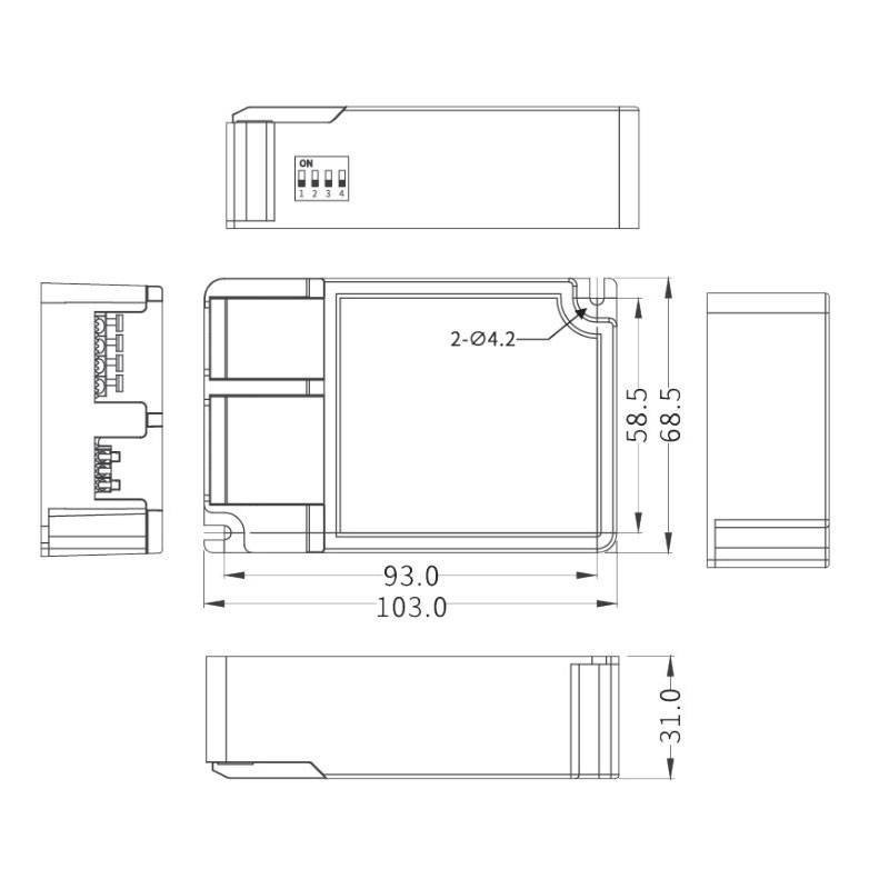 - Dimensions: 103x68.5x31 mm (LxBxH)