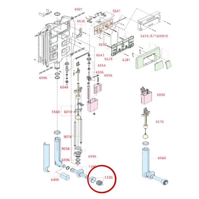 Pucci clamp, 48-58mm diameter with white rosette, original accessory for flushing cistern models Sara 9 liters 1315000001, Eco 6-3 liters 1315360001, Eco Sfioro 9-4 / 6-3 liters 1415490201.