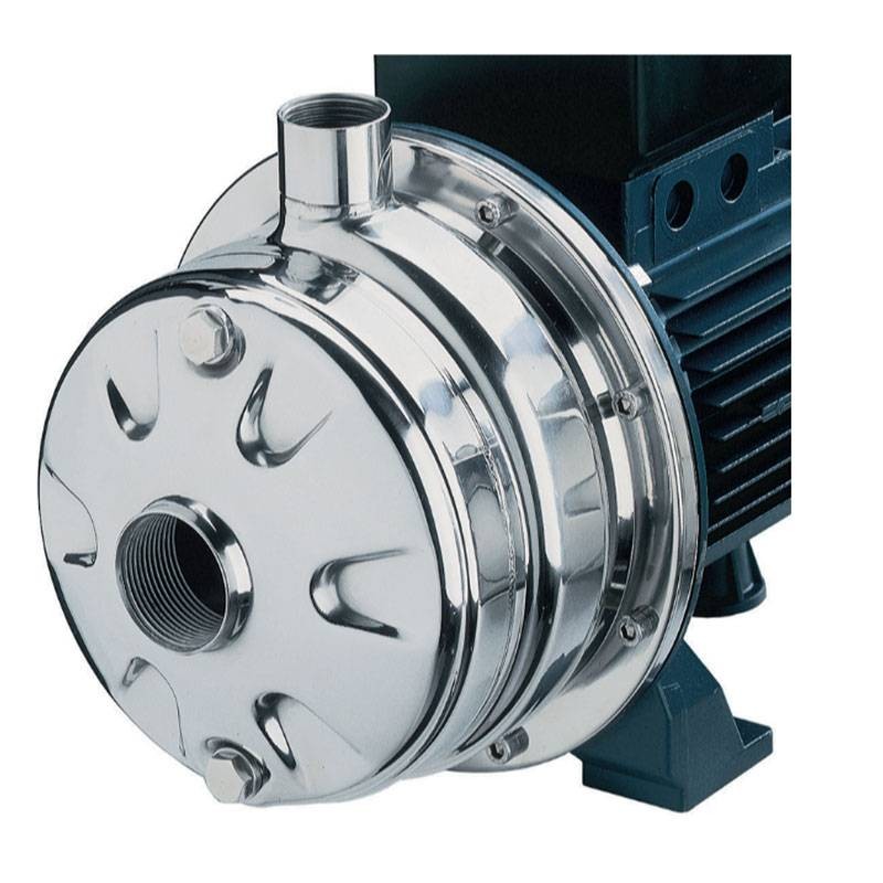 Big-impeller centrifugal pump with hydraulics made of AISI 304 stainless steel with radial impeller and with components obtained through the hydroforming process, which guarantees high corrosion resistance, high efficiency with more than80% efficiency, and low leakage. The versatility of these electric pumps is due to the different types of mechanical seals that can be applied.