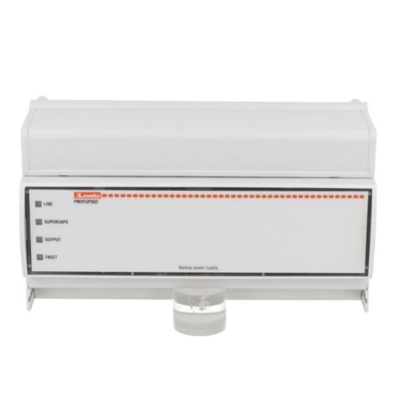 The Lovato PMVFUPS02 backup power supply is designed to ensure continuity of power supply to AC-powered PMVF interface protectors. Equipped with full static technology, it ensures reliable and uninterrupted operation thanks to the accumulable energy of 645 Ws and a power rating of 650 VA: