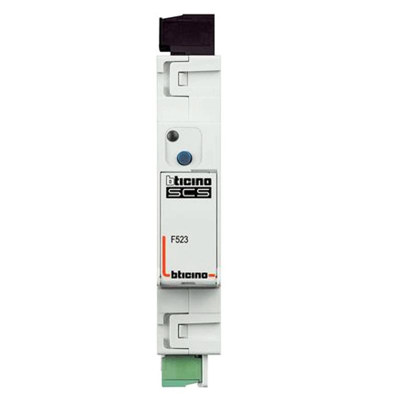 The bistable relay allows the load status to be maintained even in the event of a power failure on the SCS bus (and subsequent device reset). The device has a footprint of 1 DIN module and has a housing for 6 configurators: A, PL, G, M, P1, P2
