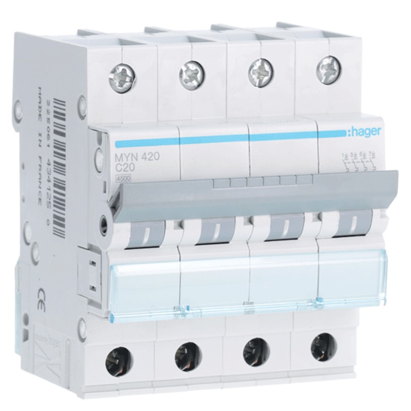 Technical characteristics rated operational Voltage ac: 230/400 V rated Frequency: 50/60 Hz rated Current in a 20 A Poles: 4 P Power rated breaking capacity Icn: 4.5 kA breaking capacity Icu: 6 kA Curve: C Number of modules 17.5 mm: 4 Power loss per pole: 1.3 W short-circuit Capacity of - NF EN 60898: 4,5 kA rated Voltage, insulation: 500v Number of operations (mechanical endurance): 20000 electrical Life and number of cycles: 4000 protection Index IP: IP20 operating Temperature: -25 to 60 °C storage Temperature: -25 to 80 °C Torque: 2.8 Nm Execution tropicalized for all climates