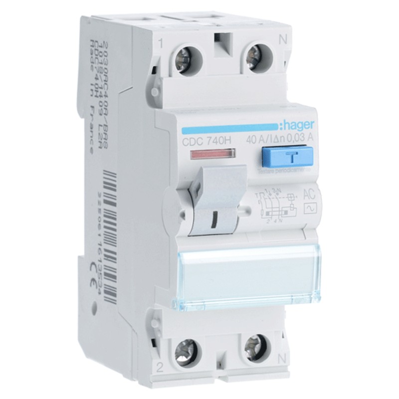 Hager residual current circuit breaker 2P 40A 30MA AC 2 modules CDC740H