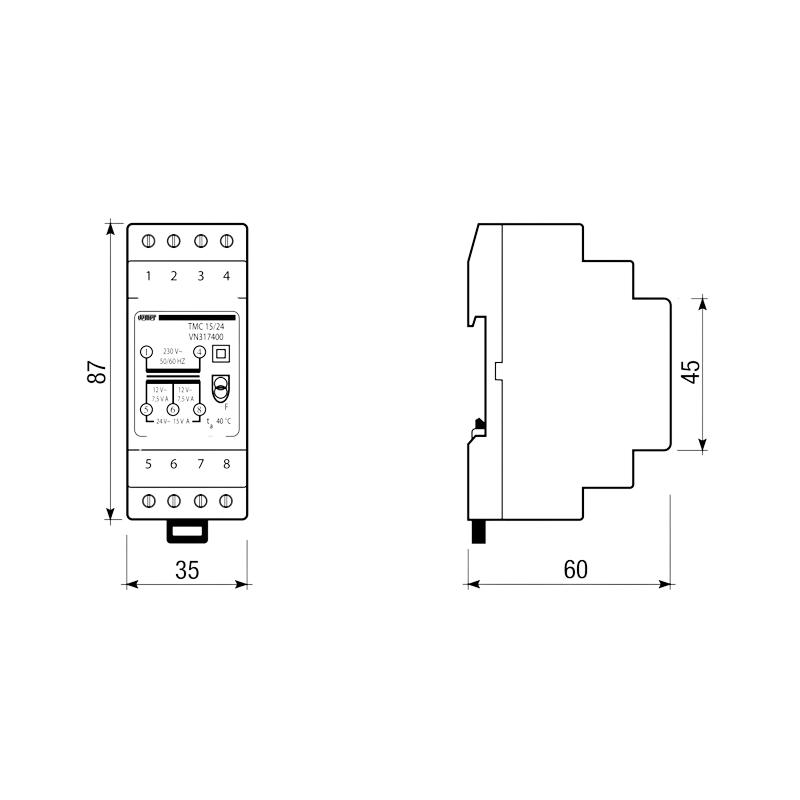 Vemer modular transformer 15VA 12-24V 2M VN317400