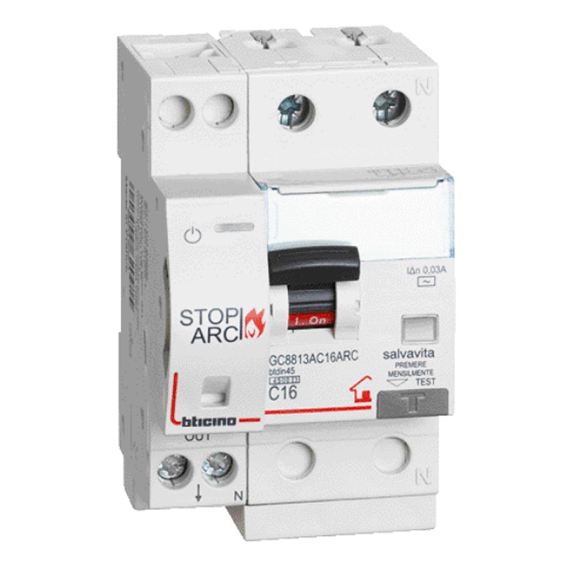 Bticino BTDIN STOP ARC with differential 16A 1P+N 4500A 0.03 GC8813AC16ARC