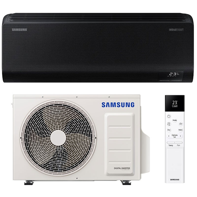 The Samsung WindFree™ BLACK is a 3.5 kW (12000 BTU) Wi-Fi inverter single-split air conditioner, R32 Gas, Energy Class A+++/A++ for maximum energy savings, designed to offer maximum comfort, energy efficiency and superior air quality.