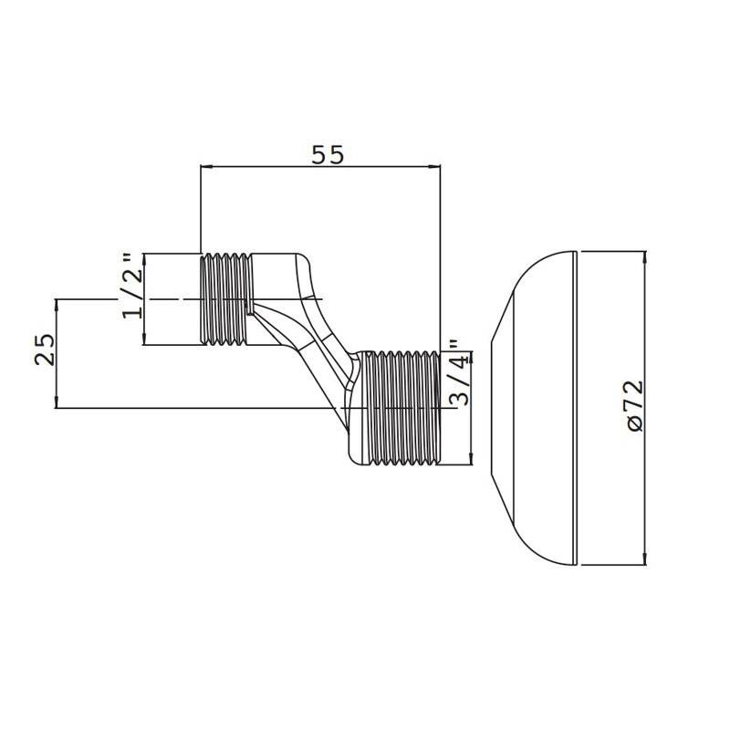 Eccentric fitting with Rosette Model Lusso, Male/Male 1/2 x 3/4 inch connection in chrome-plated brass.
