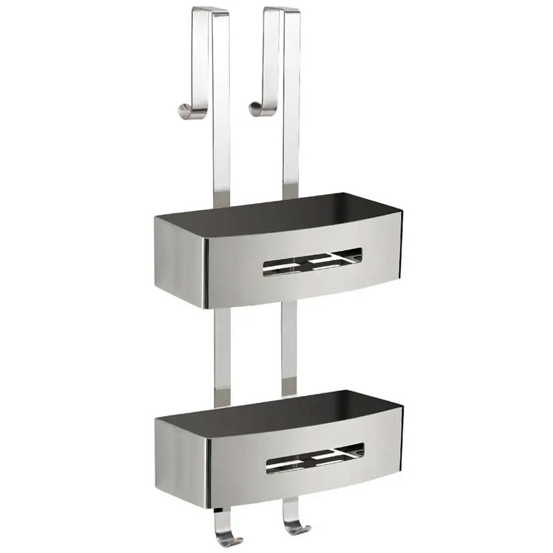 Gedy Poseidon shower caddy double shelf made of AISI 304 stainless steel and ABS, polished chrome model, dimensions: 24 cm x 18.7 cm x 58.4 cm.