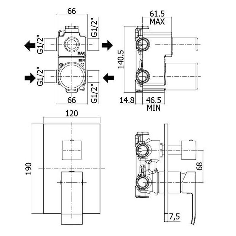 Paffoni Stick concealed shower mixer 3-way diverter SK019CR