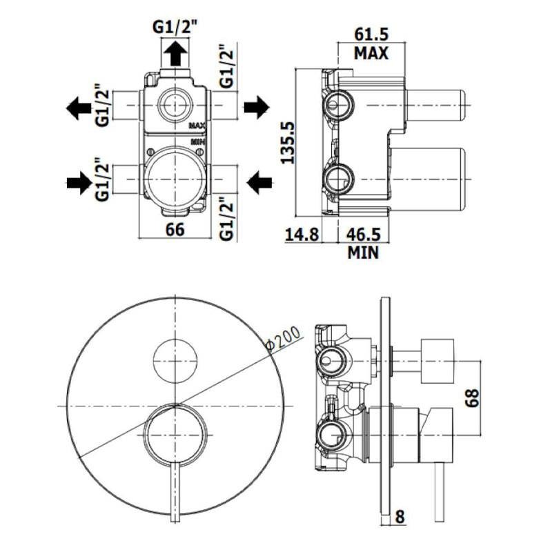 Paffoni Candy 3-way diverter built-in shower tap CA019CR