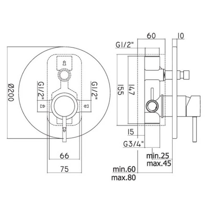 Paffoni Light recessed shower tap with diverter chromed with the following features: