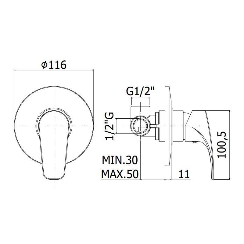 Paffoni Lime Series Single Handle Recessed Shower Tap with the following features: