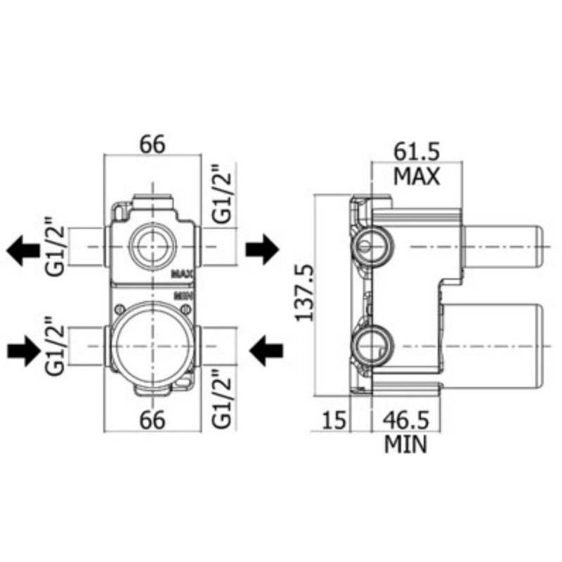 With two independent outlets and a combination position, this mixer offers complete management of shower functions such as overhead, hand shower, and combination spray. The push-button diverter makes it easy to switch between or use them together, offering flexibility for every need.