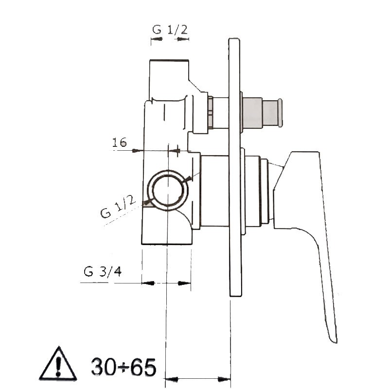 Teorema Bing recessed shower tap with diverter, single-lever chrome plated, with the following features: