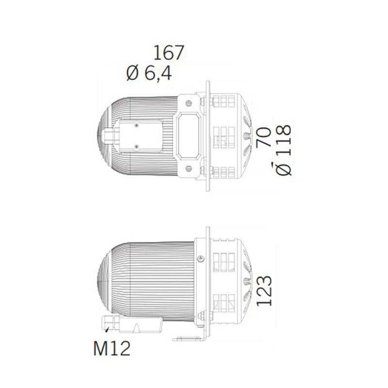 Electromechanical siren designed for industrial applications. The device, consisting of an electric motor connected to an internal fan, generates a long, high-pitched sound. The high-frequency sound replicates the typical characteristics of a whistle, allowing it to be recognized by the user. Ideal for industrial applications, from general signaling to warning of impending danger.