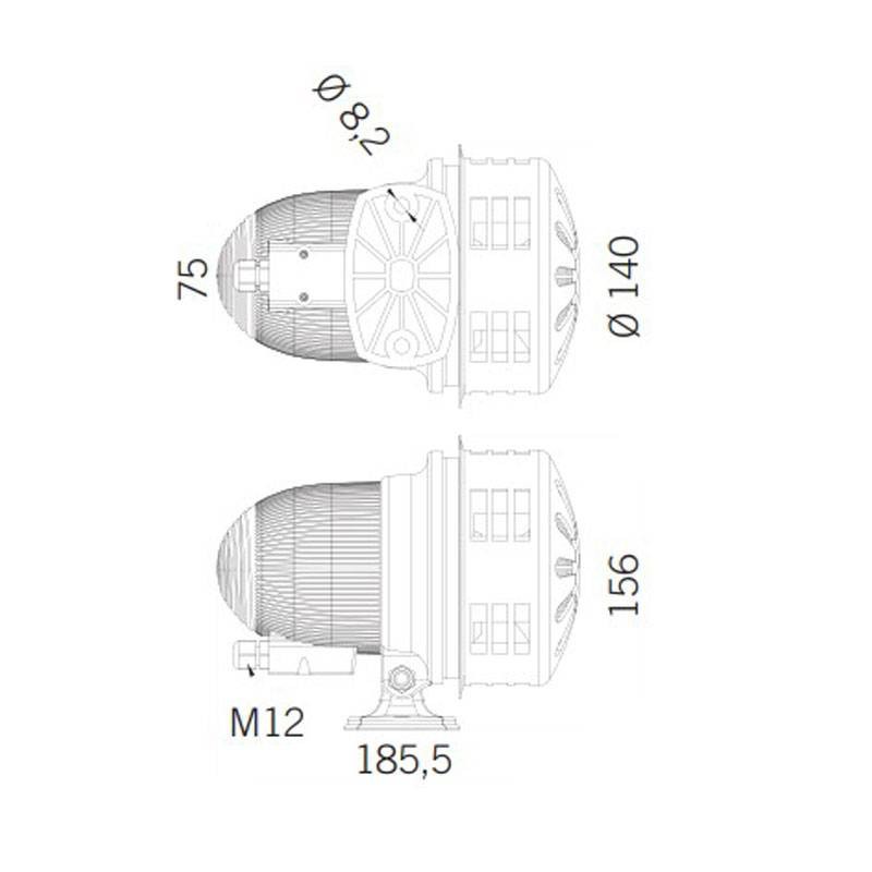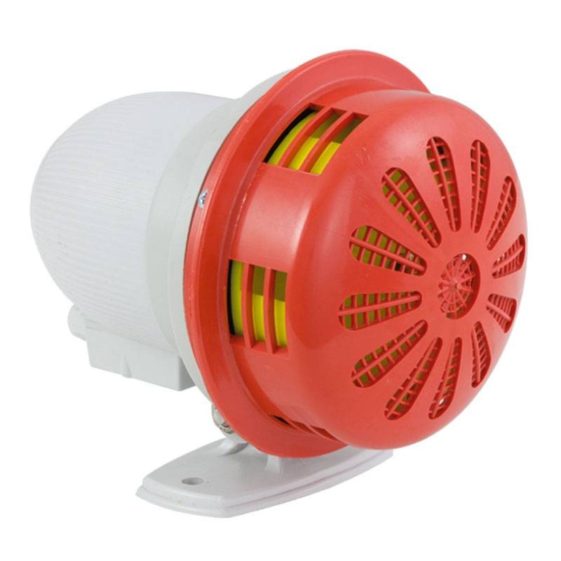 Electromechanical siren designed for industrial applications. The device, consisting of an electric motor connected to an internal fan, generates a long, high-pitched sound. The high-frequency sound replicates the typical characteristics of a whistle, allowing it to be recognized by the user. Ideal for industrial applications, from general signaling to warning of impending danger.
