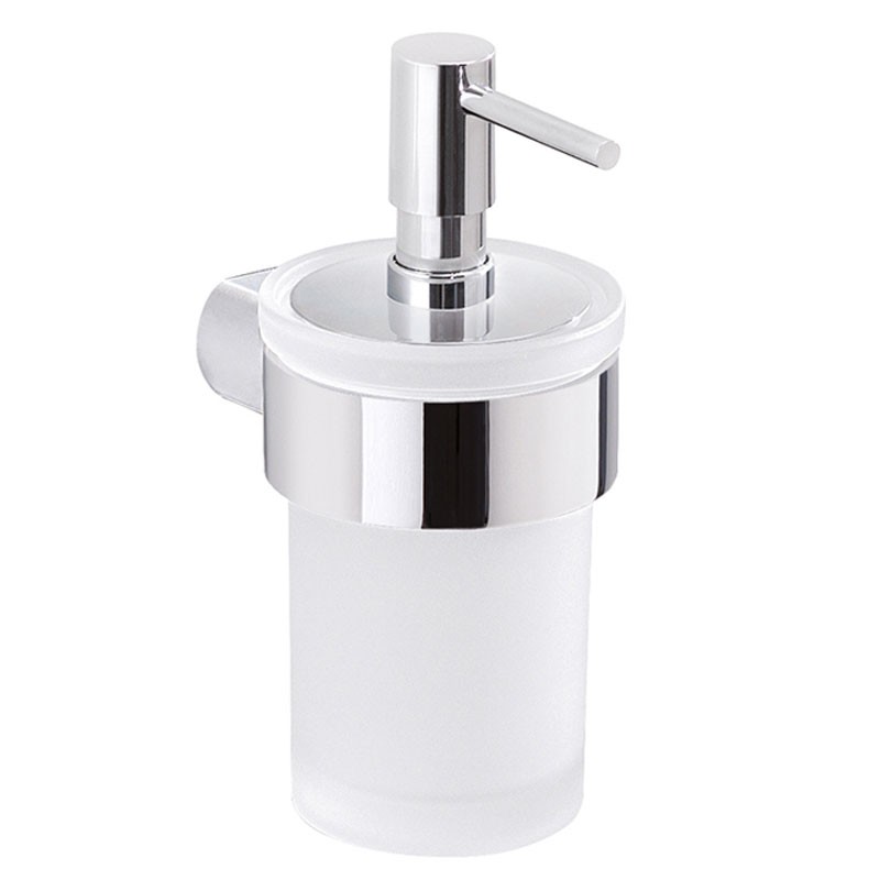 Gedy Pirenei wall-mounted soap dispenser made of stainless steel and cromall, with frosted glass container, chromed color, with chromed resin dispenser, size 6.9x10.5x15.1cm.
