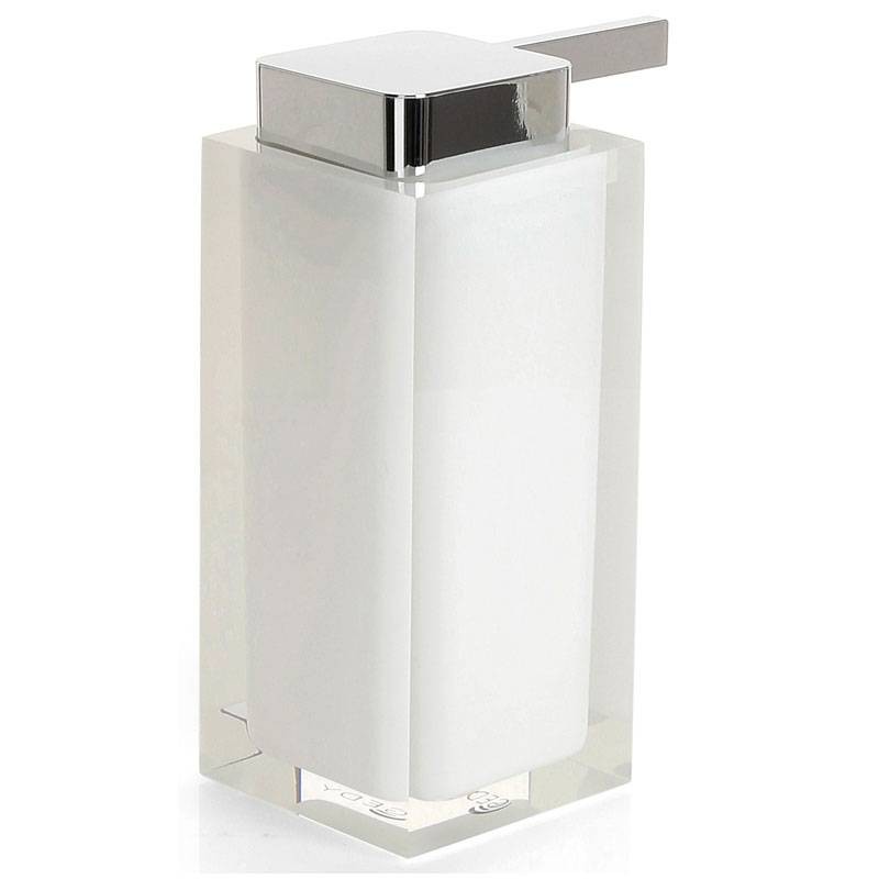 Gedy Rainbow soap dispenser white colour, made of resin, size 7x11.3x17.2cm, with chrome-plated plastic dispenser.