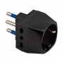 Triple adapter with Master plug S17 2 poles+E 16 amps, 2 bivalent sockets P17/11 2 poles+E 16 amps, and 1 Schuko socket P30 16A, black color.