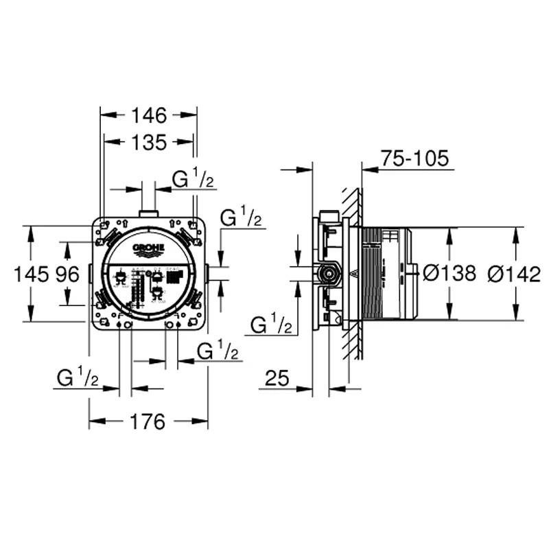 With adjustable depths between 75 and 105 mm and an included mounting template, the Grohe Rapido SmartBox allows for precise and customized installation. Optional fasteners for solid masonry and drywall make the process even more versatile.