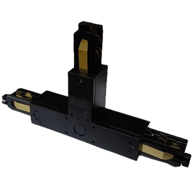 T-joint for Ilmas track outer right/earth inner left polarity, black color, IP20 protection rating.