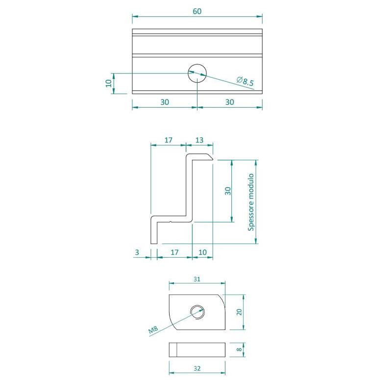The Alusistemi end clamp is designed to ensure a firm and precise attachment of the module to the support structure. Ideal for rooftop or ground-mounted installations, it enables quick and secure installation thanks to the eccentric block that facilitates alignment within the slot.