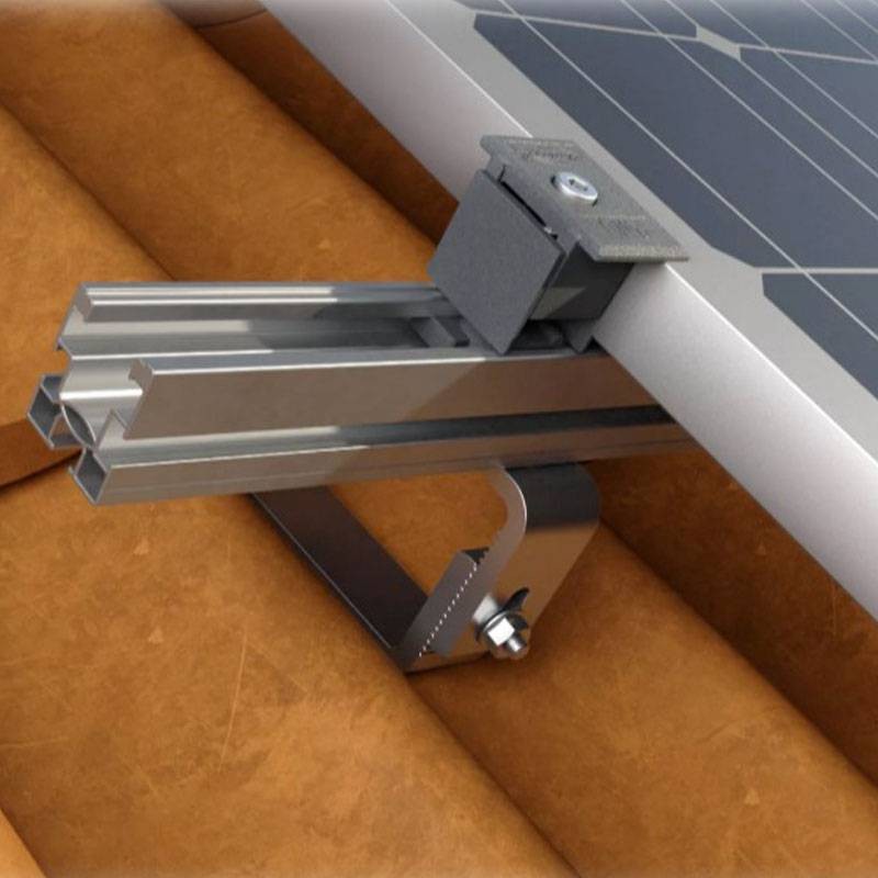 Aluminum hook RH 40-52 H AL with 3 adjustments, for pitched roofs with variable thickness tiles and ventilation battens. Compatible with Solar profiles, with the following features: