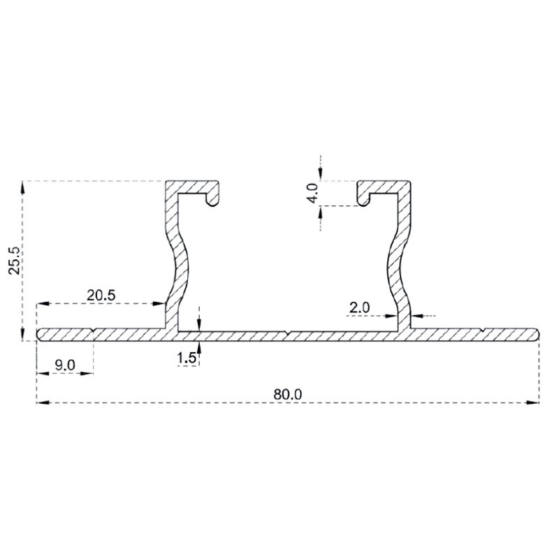Made of EN AW-6060 T6 aluminium alloy, the EASY WING SMALL profile is extremely strong and durable, with a tensile strength of 190 N/mm² and a yield strength of 150 N/mm². These characteristics make it a reliable support even in outdoor environments and challenging weather conditions. The weight of the profile per metre is 729 g/m, allowing for balanced installation without compromising structural strength.