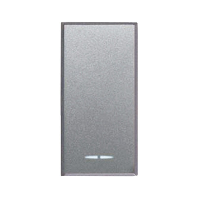 Key reversing switch with gem, Ave Allumia S44, colour Tech Grey, 1P 16AX illuminable, polished finish, 1 Module.