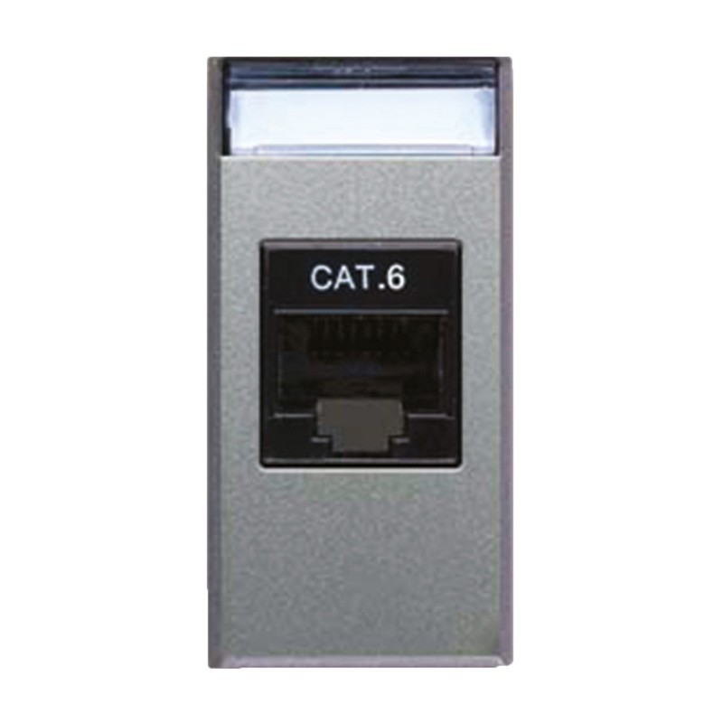 RJ45 CAT6 UTP socket, unshielded, Ave Allumia S44 colour Grey Tech, glossy finish, 1 Module.