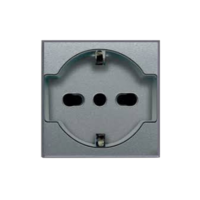 2-pin socket, Ave Allumia S44, colour Tech Grey, 2P+E 10/16A 250V, polished finish, 2 modules.