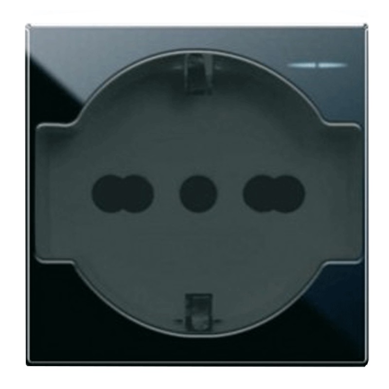 Ave Life S44 two-wire socket, colour Black, 2P+E 10/16A 250V, polished finish, 2 Module.