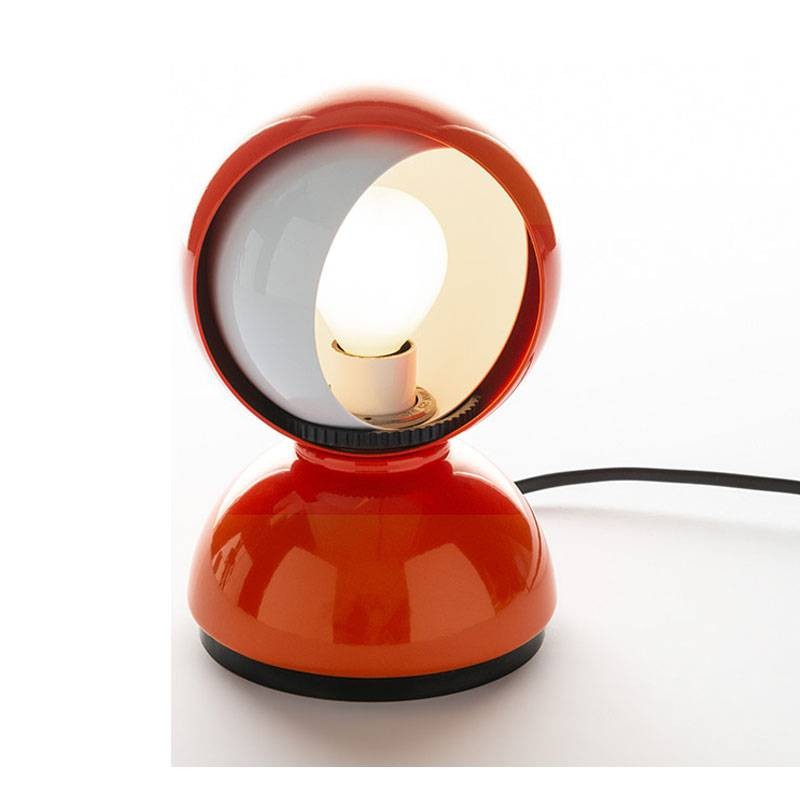 Artemide Eclisse red 0028030A is Vico Magistretti's icon: a compact lamp in painted metal with a rotating internal lampshade that eclipses the light, transitioning from direct to diffused illumination with a simple gesture.