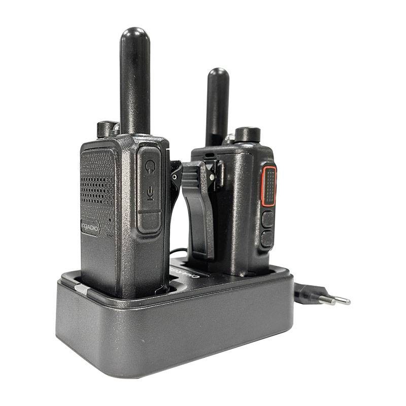 The included desktop charger allows up to two batteries to be recharged at the same time, even in the absence of the transceivers. In addition, the device is compatible with USB-C cables, allowing charging with smartphone and tablet chargers. The built-in LED flashlight adds convenience, making the device useful even in emergency situations.