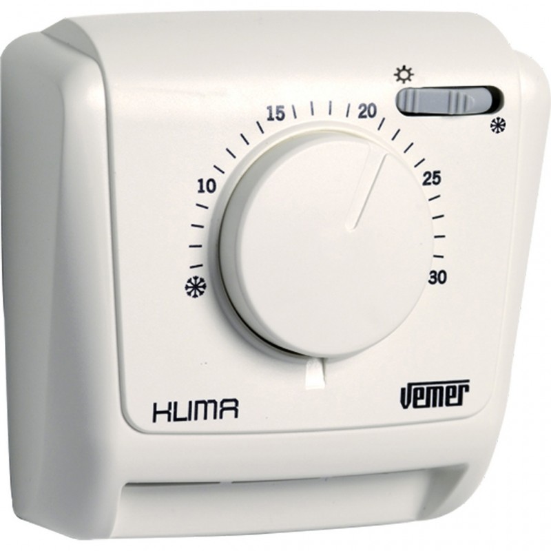 Vemer Klima SW wall-mounted mechanical gas membrane thermostat, easy to use with front knob. Ideal for heating or cooling, with summer/winter switch, with the following features: