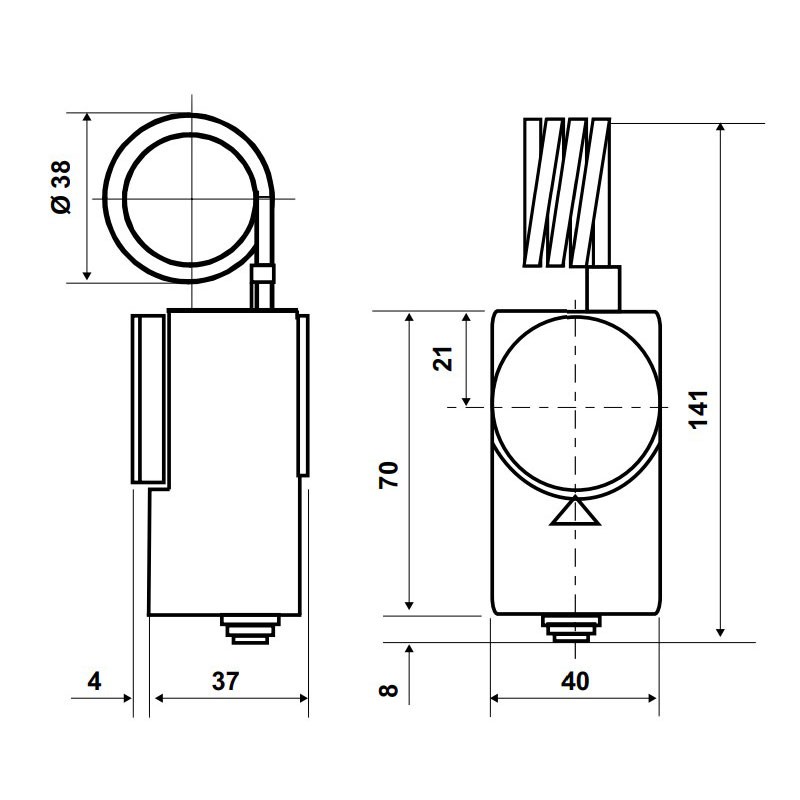 Electromechanical room thermostat Fantini Cosmi with tinned copper spiral capillary. Ideal for greenhouses, cold rooms, electrical panels, and industrial environments, with the following features: